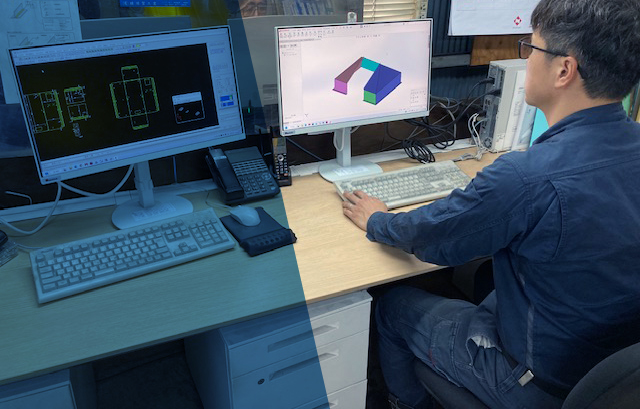 当社は3D-CAD図面に対応しており、複雑な形状や高精度が求められる部品でも正確に加工可能です。図面データをもとにスムーズな打ち合わせ・工程設計ができるため、短納期やコスト削減にも貢献。試作から量産まで柔軟に対応いたします。